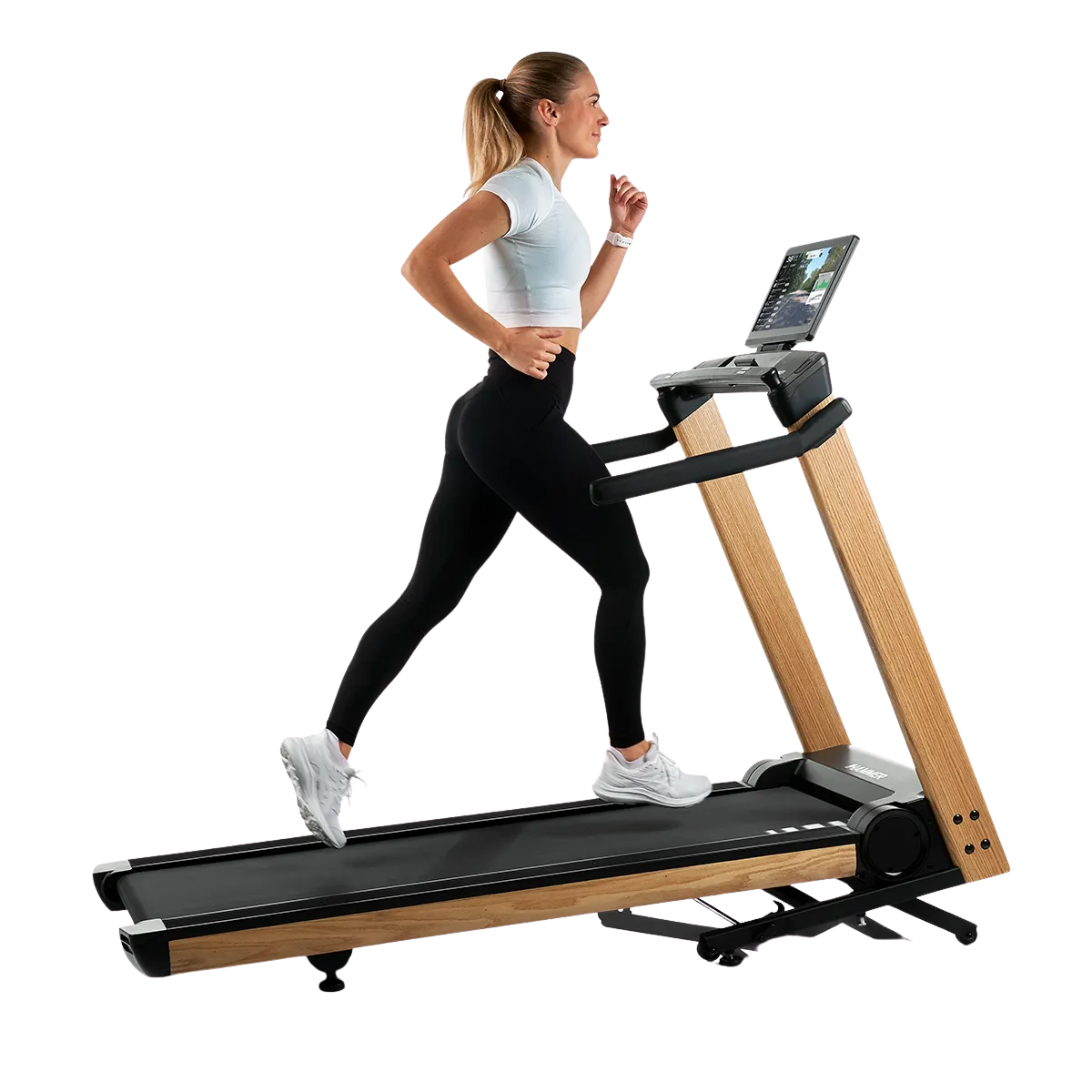 Беговая дорожка Hammer Q.VADIS 12.0 NorsK выведет ваши домашние тренировки на новый уровень. Высококачественная рама, обшитая дубом, гармонично впишется в ваш дом. 15,6-дюймовый сенсорный экран с предустановленными приложениями, такими как Kinomap, и возможность подключения к Zwift обеспечивают мотивацию. Уникальное вертикальное складывание экономит место, а 6-точечная система амортизации обеспечивает легкую нагрузку на суставы при беге и ходьбе.