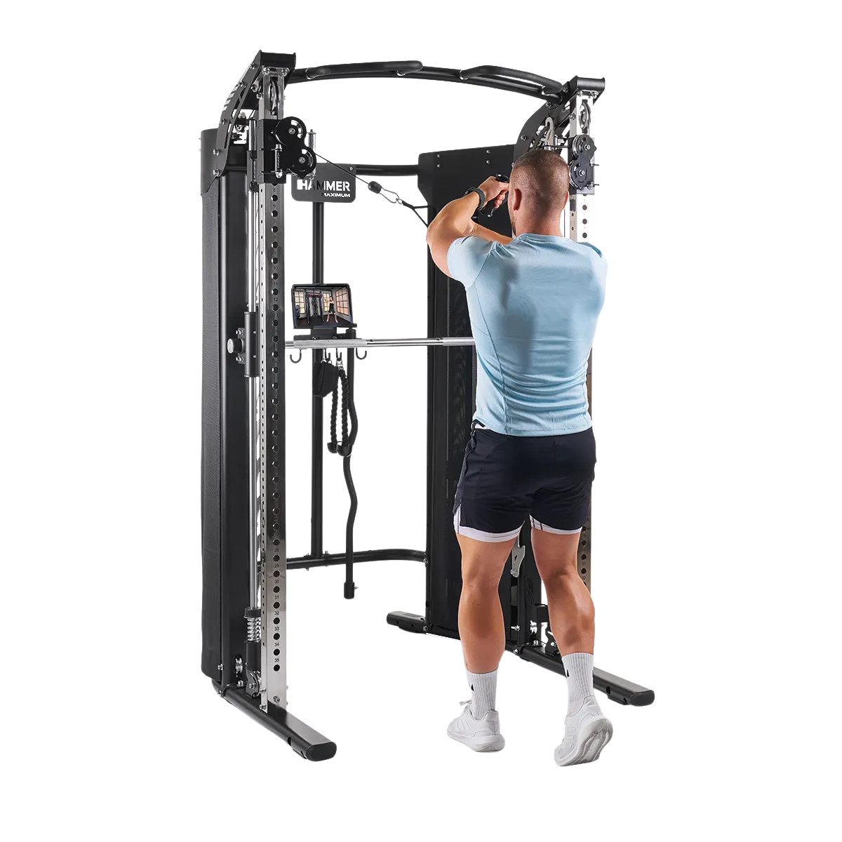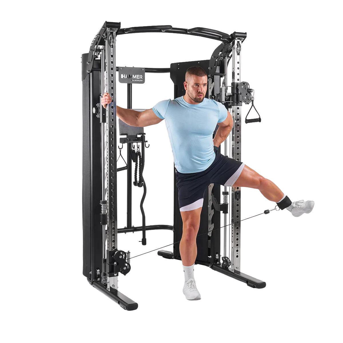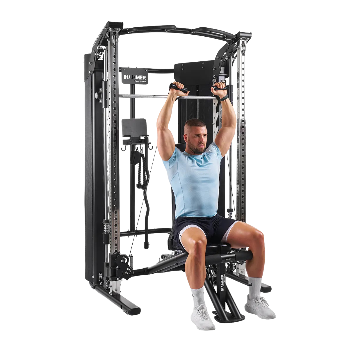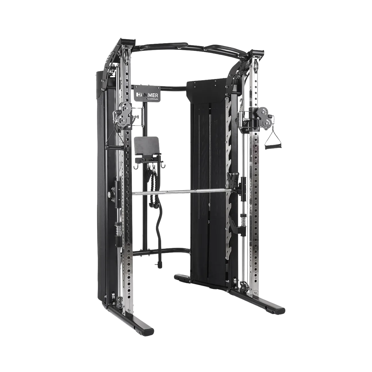 Откройте для себя Hammer Autark FT3: будь вы новичок или опытный спортсмен, этот тренажер позволит вам эффективно тренироваться, не выходя из дома. Сердцем тренажера является мультипресс, который позволяет тренироваться как со штангой, так и с блоками веса, просто поворачивая рычаг. Вы также можете добавить весовые пластины, купив держатели для весовых пластин Smith Bar.