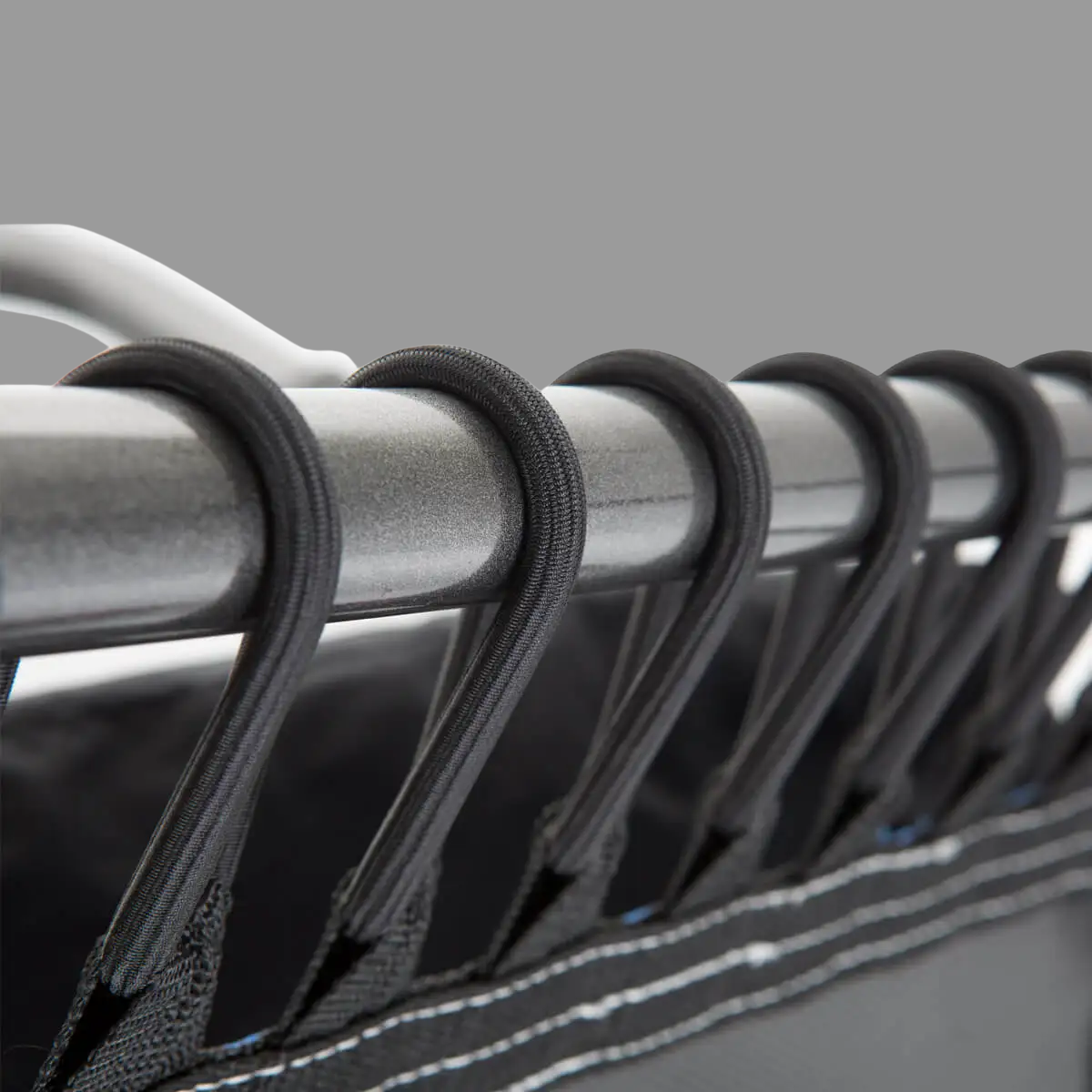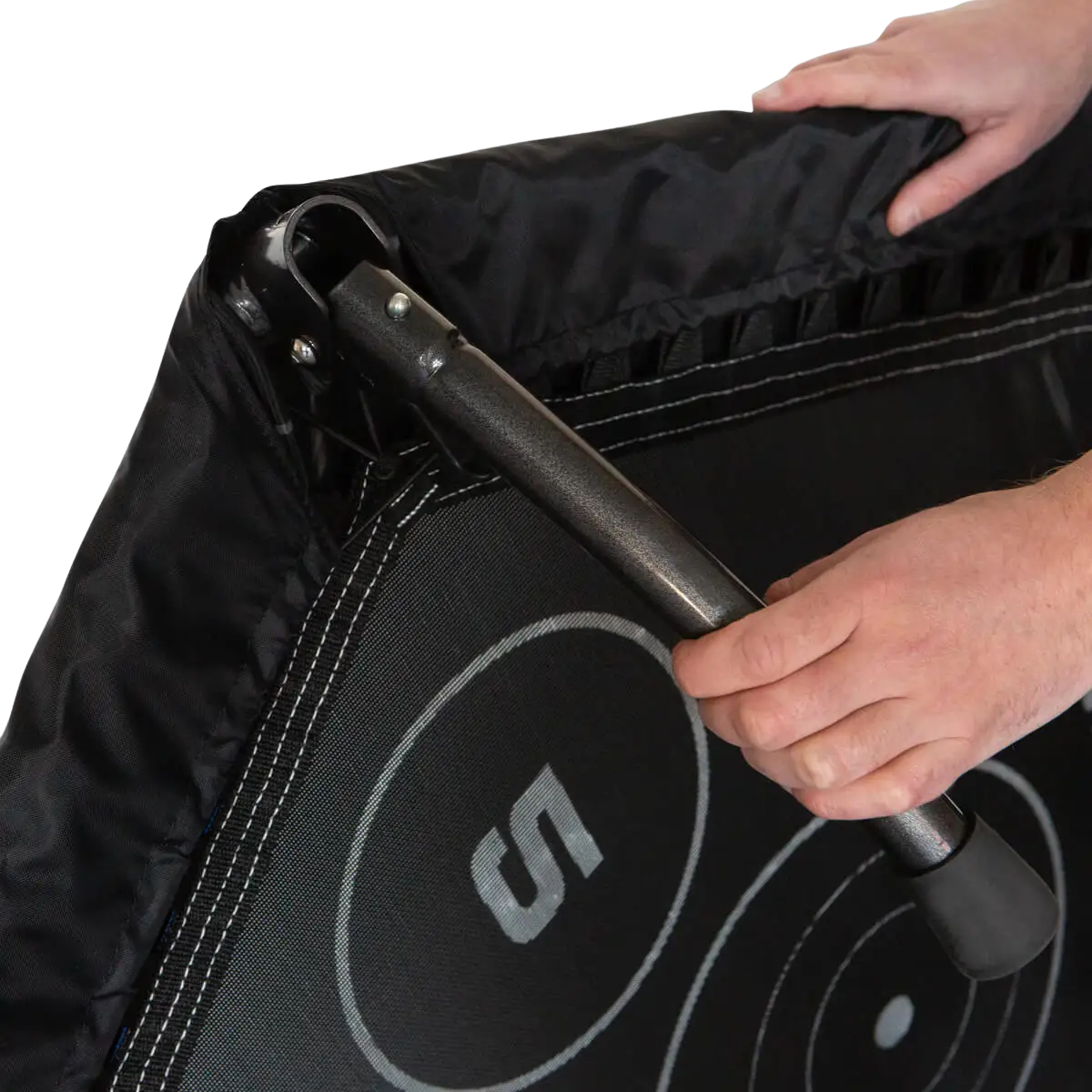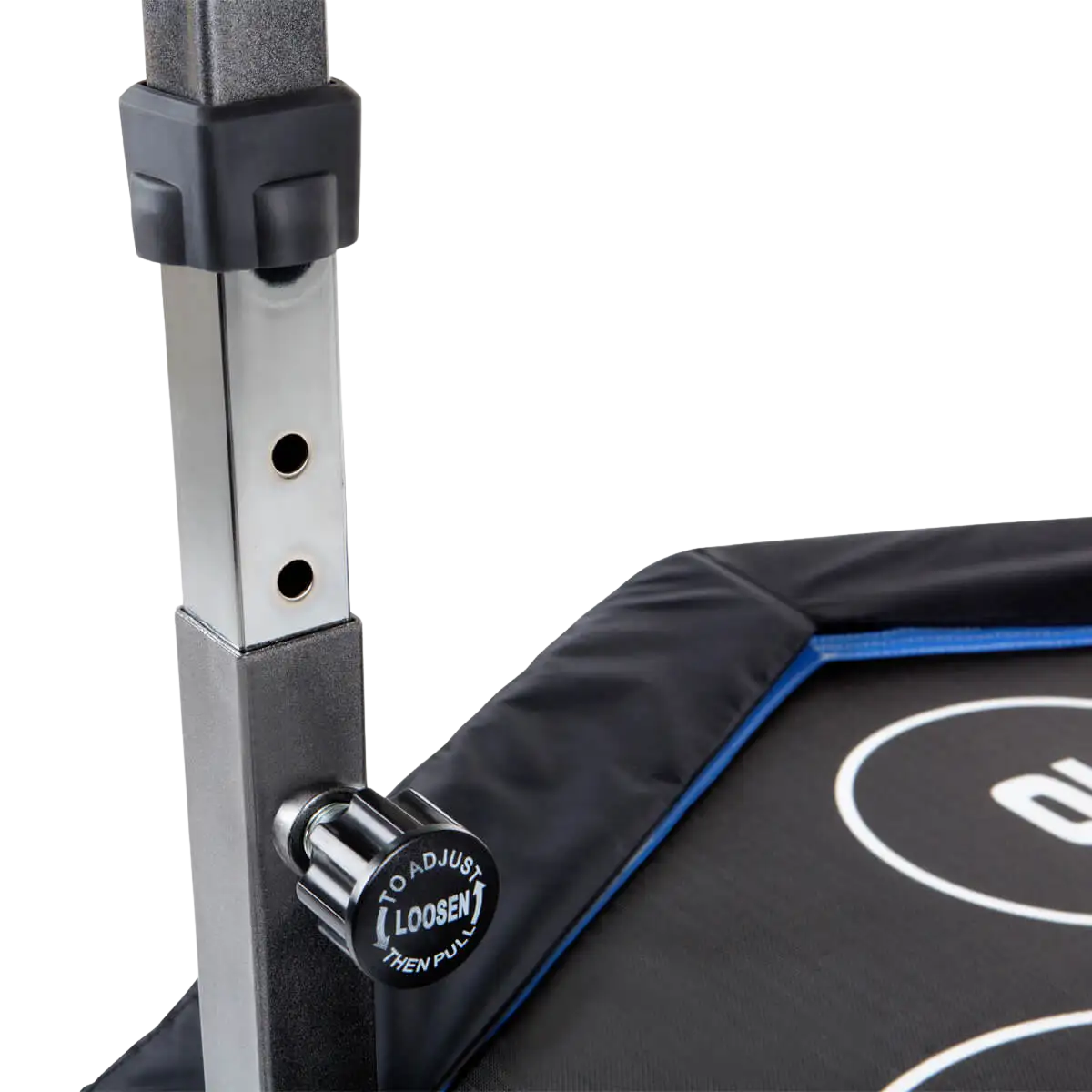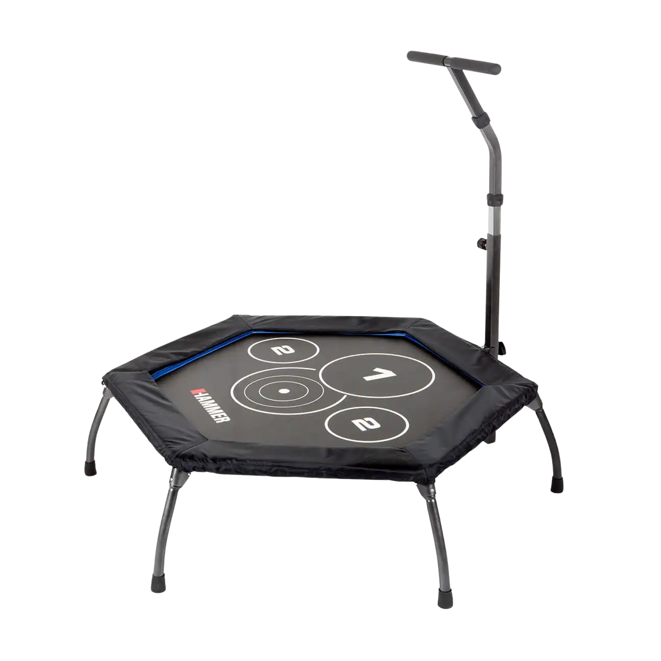 Батут Hammer Cross Jump делает процесс похудения легким и веселым. Упражнения на фитнес-батуте — это вызов сам по себе, поэтому это быстрый способ сбросить вес. Тренированные ягодицы, стройные ноги и сильные основные мышцы легко достигаются с помощью этого батута. Чтобы тренировать и мышцы верхней части тела, стоит включить в тренировку небольшие гантели. Сжечь 1000 килокалорий за час — не проблема с этим батутом! Ножки батута складываются, что позволяет убрать батут с глаз долой, когда вы не занимаетесь.